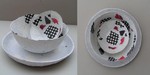 2013Schaal van papier en gips met collage. Doorsnede 32 cm hoogte 10 cm.