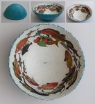 2013Schalen van papier met collage-techniek. Kleine schaal: doorsnede 11,5 cm hoogte 4 cm. Grote schaal: doorsnede 16,5 cm hoogte 6,5 cm. Onderste schaal: doorsnede 21 cm hoogte 3 cm.